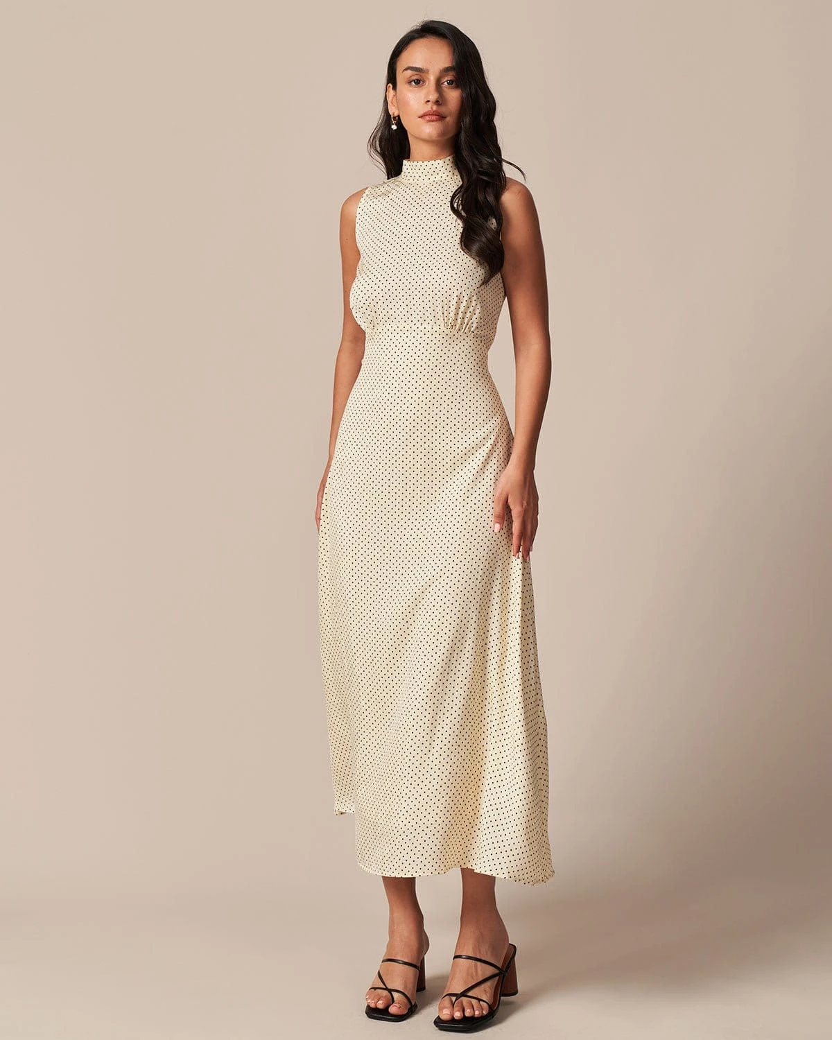 This Polka Dot Maxi Dress is made of Polyester. Polyester is an artificial fiber that feels soft, looks lustrous, and dries fast. It’s also durable, with good resistance to wrinkles, stains, and sunlight.