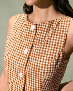 This button mini dress is a masterpiece of design. Its boat neck is both flattering and sophisticated, adding a touch of class to any outfit. The button detailing adds a charming touch, while the mini length offers a youthful and fun aspect to the dress. The choice of beige as the color of the dress is also a deliberate design move. Beige is a timeless and versatile color that can be paired with virtually any accessory, making this dress a must-have in any wardrobe.
