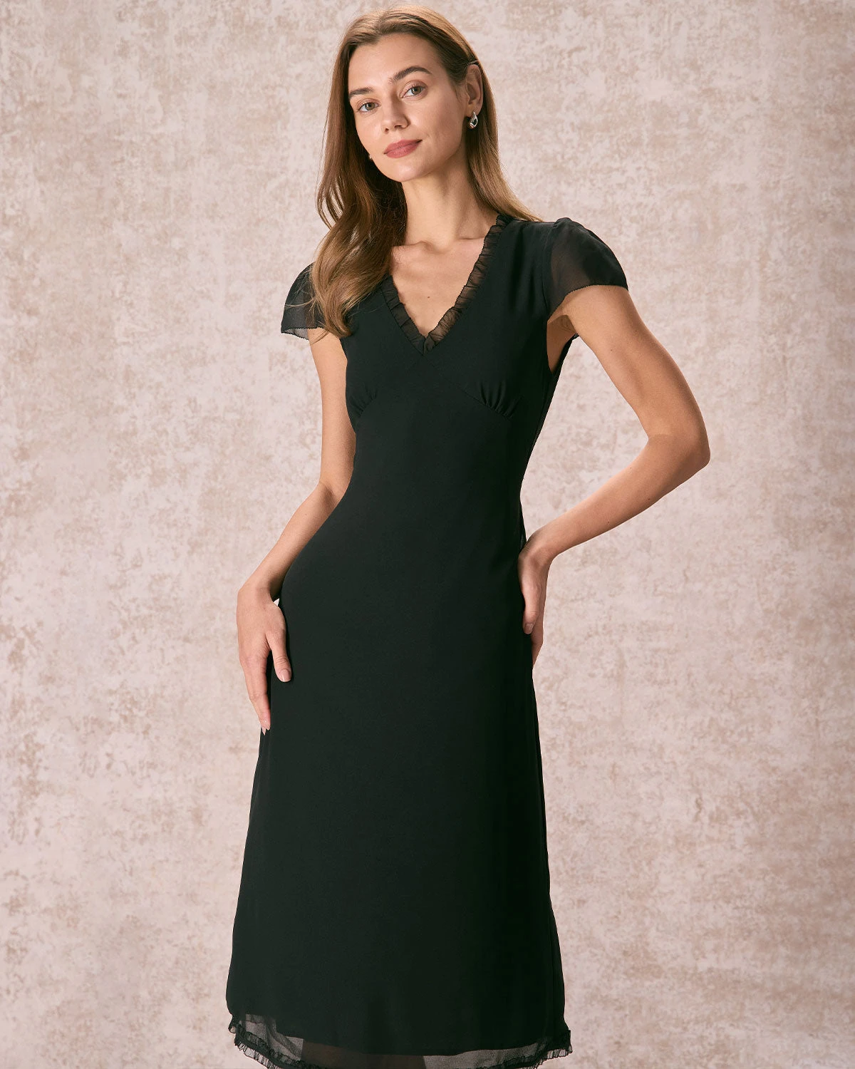 Be the first to review “The Black V Neck Ruffle Sheer Midi Dress” Cancel reply