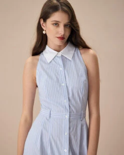 So elegant the water dress is and wear it! This midi-length dress features pearl straps and water ripples that give you a fabulous look. It is perfect for parties, vacations, or daily.