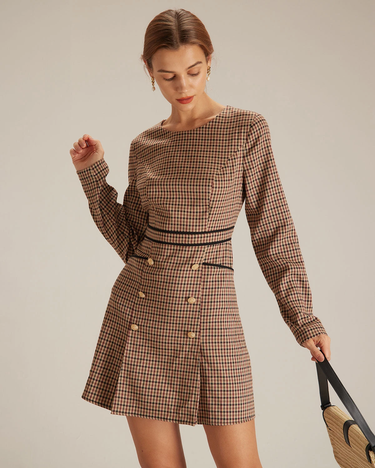 Be the first to review “The Brown Round Neck Plaid Button Mini Dress” Cancel reply