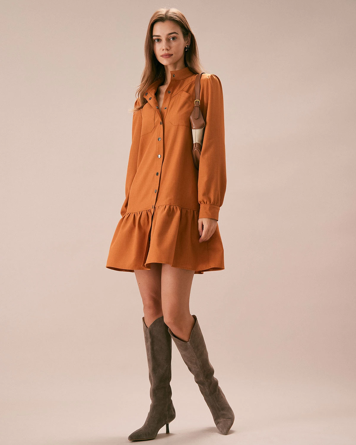 This Button Mini Dress is a stunning and elegant dress that is perfect for any occasion. The mock neck, slim fit and A-Line deisgn adds a touch of sophistication to the dress, while the ruffle, button and pockets deisgn add a unique and eye-catching element. The natural waisted and slim fit make it comfortable and easy to wear, while also creating a flattering silhouette that accentuates the figure.