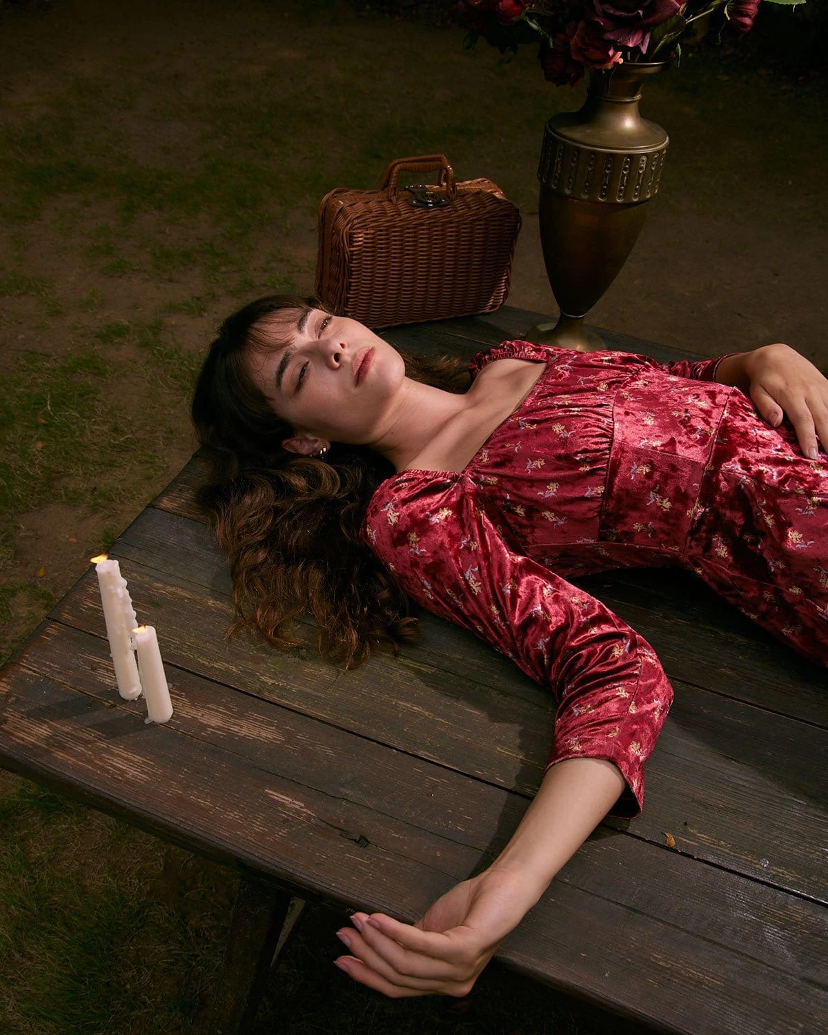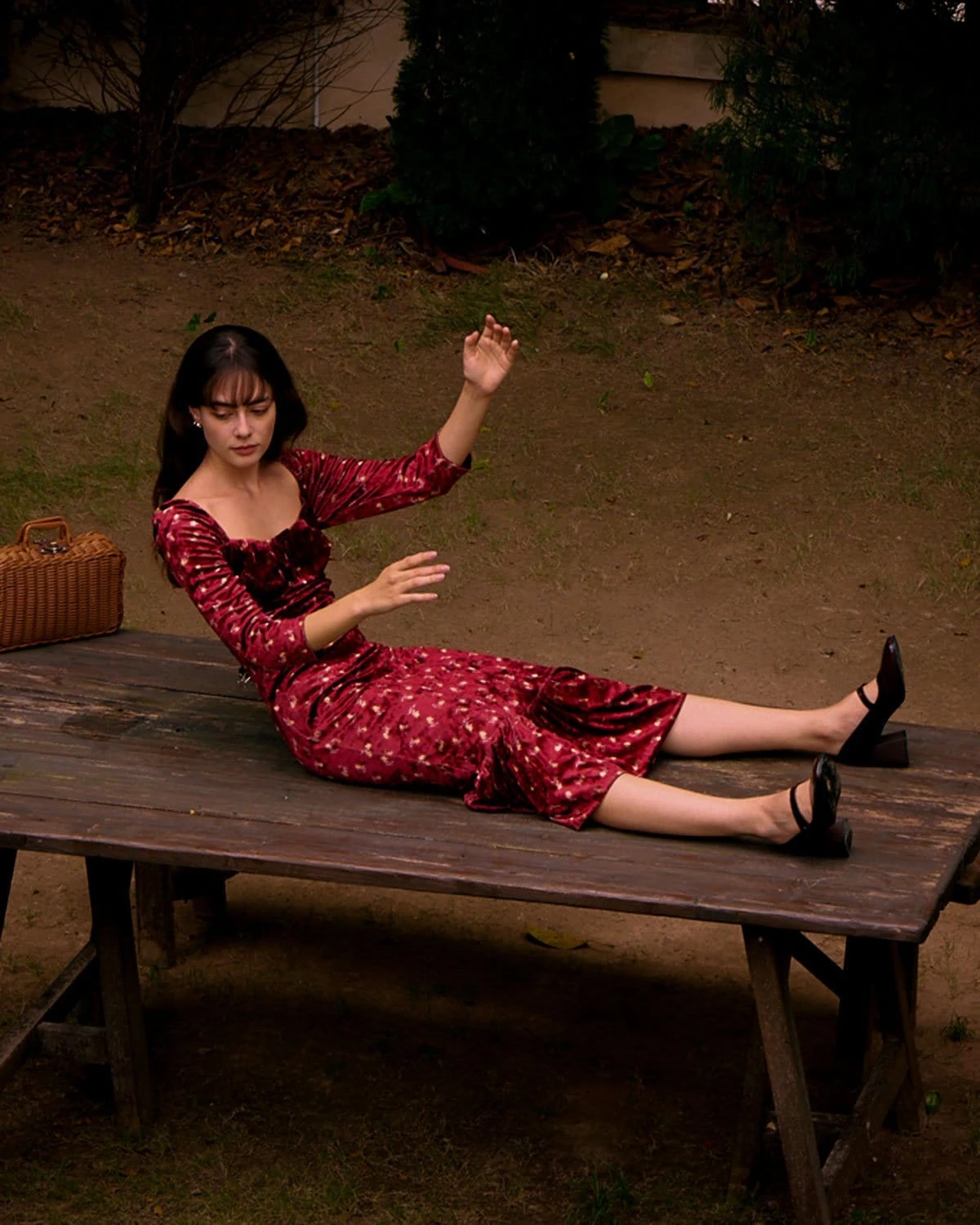 This Velvet Midi Dress is made of Polyester. Polyester is an artificial fiber that feels soft, looks lustrous, and dries fast. It’s also durable, with good resistance to wrinkles, stains, and sunlight.