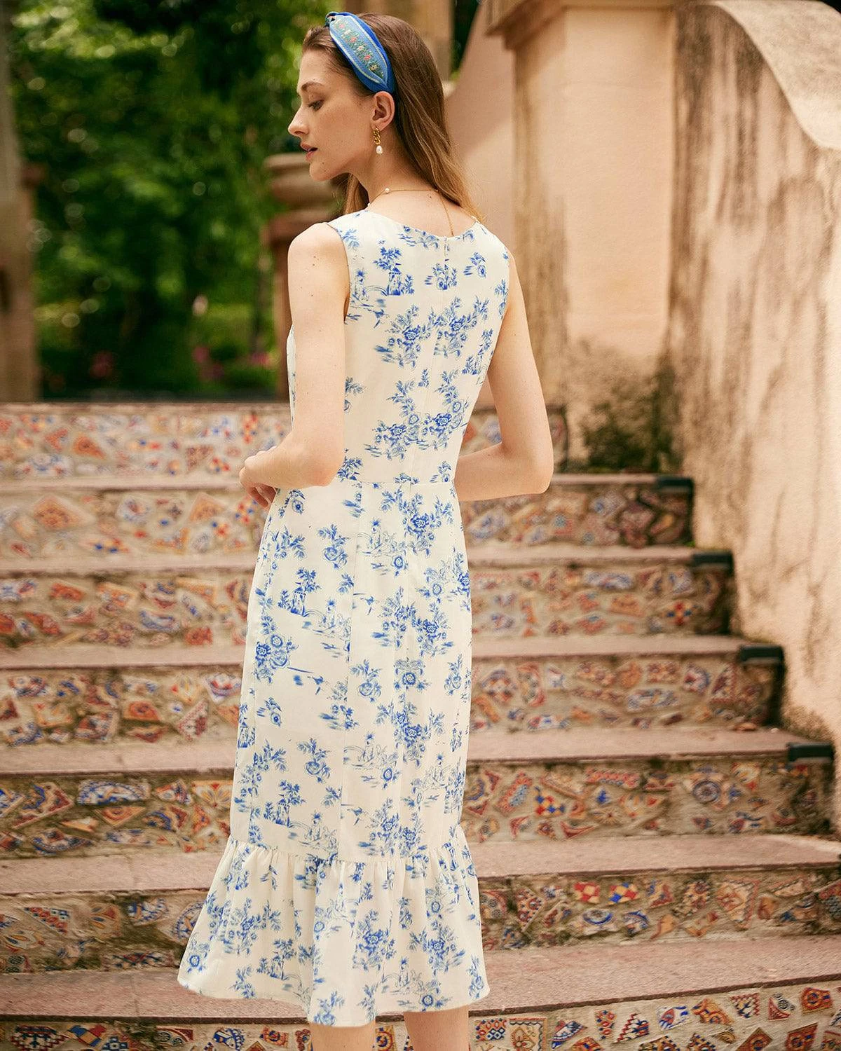 It shows female beauty from all sides. The square neck and sleeveless design perfectly decorate women’s collar bone and arm’s line respectively, making your body more stereoscopic visually, while the ruffle hem, side split and fishtail hem design outline women’s lower part silhouette, fully exuding female charm and gentle. Plus, the floral print strikes people more visually.